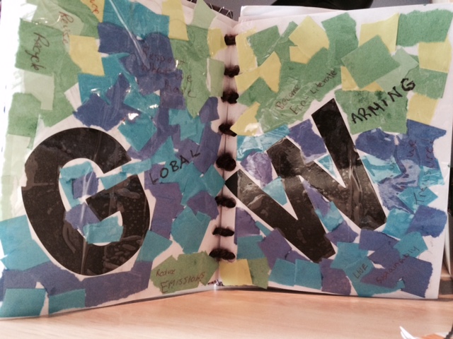 Another discussion that I took part in was led by Kaitlin about glacier melting. This conversation helped me realize that I am very interested in the way mother nature is warming due to the effect of human misuse. Our discussion covered the topics of glacier melting as well as global warming and overpopulation. Discussing glacier melting made me realize how large of an issue climate change is and how it will greatly affect human life in the years to come. When it came time to choose what topic that I wanted to explore further as a eco-issue project, I realized the potential that was there with the topic of climate change and I feel that this is a topic that will grow in importance in the coming year. The following image is a picture of my creative journal entry about global warming.