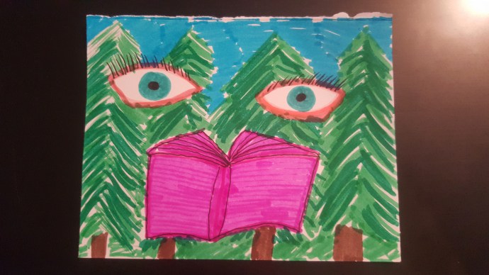 Secondly, let’s take a deeper look at the eyes and the book on this flag. The eyes represent my awareness and my openness towards learning about treaty issues both past and contemporary. The eyes also represent my curiosity that pushes me to want to learn more so that I can be a stronger educator. Also, the eyes represent the main part of my treaty walk, which is being open to opportunities and taking hold of those as frequently as I can.